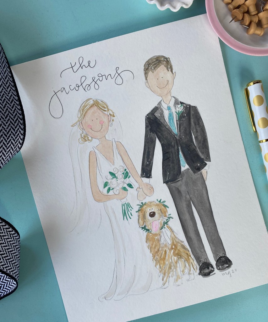 Portrait based off a single image with all individuals (preferred) or pieced together using several photos.